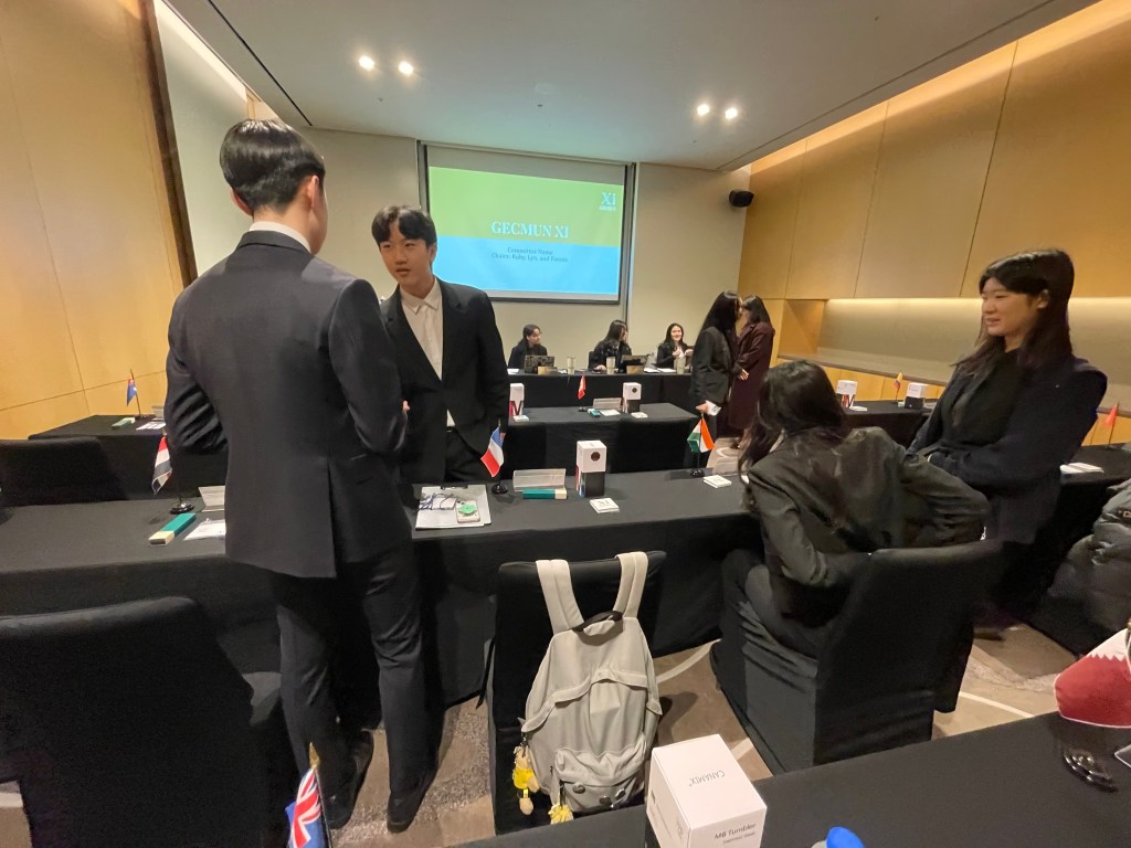 In February, I traveled to Jeju Island to participate in MUN Conference. It was my first time doing a MUN conference and I was anxious and nervous as it was more formal than I thought it would be. As I was sitting in my spot of the table, I was venturing through all of the materials the directors provided us with. There was a tumbler, post-its, pen, name tag, and the country flag and card. As I sat, trembling my left leg, and looked over my opening speech, I surely thought it would be easy. I thought if I make an opening speech and make a group and be the main submitter of the resolutions, then I would be able to win an award.