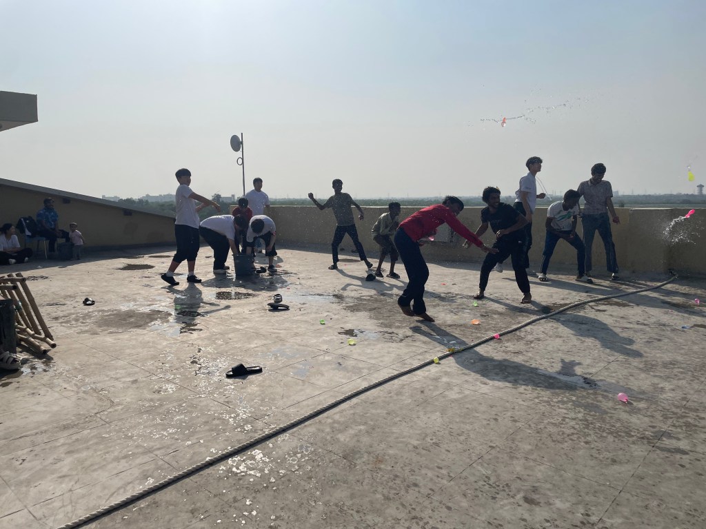 We arrived at the school, but quickly realized I didn’t bring every material needed for the activities. The treasurer of THEIA and I had to go back to the hotel since it only takes us around 15 minutes to get there, but it ended up being 25 minutes due to the traffic. We ended up being late for lunch, and I felt really bad for the missionary having to take us. But in the end, we split up into groups and lead ddakji, a Korean traditional game. After that, we went inside for another skit, while others were preparing for the water balloons. It took more time than I thought it would, and we ended up “flooding” the bathroom. We took it upstairs and started our game. We split up into boys and girls. Although the balloons lasted for only a small amount of time, I could tell everyone was having fun with them. I thought this was a great ending and closure to our services today. It didn’t feel like the last time since we are coming back on Sunday for the worship service, but I could feel a tiny bit of the end of the tunnel.