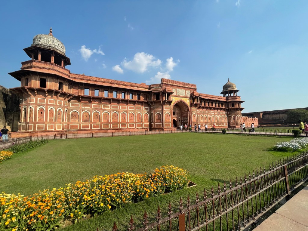 For the first time in an actual restaurant, we ate our first ever pure Indian food. There were more than just curry. It was truly a new cultural experience. Our next picture was the Agra Fort. Straight away, I was lost for words. It felt like a clay fort, but the sunlight grimmering on it, and the birds circling it, it felt like a whole other world. I found it more engaging than the Taj Mahal because of the different elements it included, such as the sound-travelling wall, a garden, etc. The only part that I felt that I regretted was that my phone died, so I couldn’t take many pictures. I also felt like everyone was tired, so we didn’t look as thoroughly as we did in the Taj Mahal.