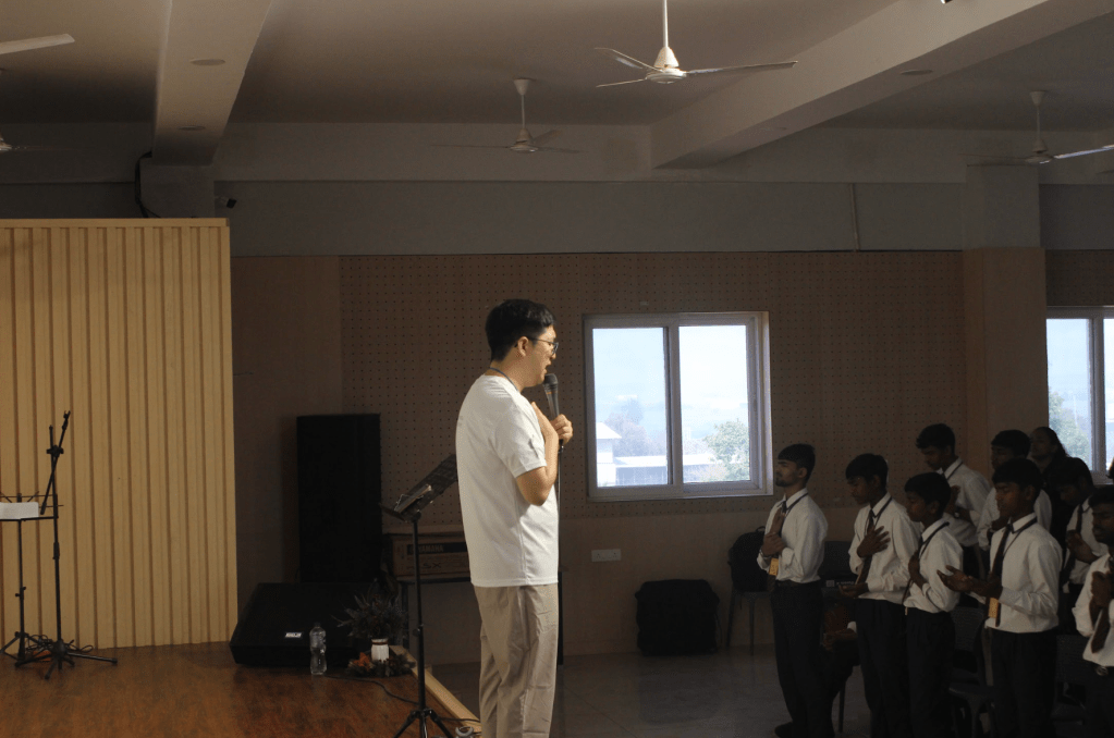 Today was the second day of my service. I was relieved when I thought that they would be able to communicate with me through English, but I was also afraid thinking that the activities we prepared wouldn’t be enough to engage them. When we arrived, I was actually breathless at the scale of the building. Although I knew that it wasn’t as good as our school, in the shoes of the Indian students, I knew they loved the school. The missionaries started introducing the building, and I was surprised that the dorm was Korean military style. I greeted them while passing their classroom. We gathered in the HESED Hall (unfailing love), and we started worshiping. That was the first time I felt tears in my eyes. I couldn’t believe how passionate they were in a condition like this.